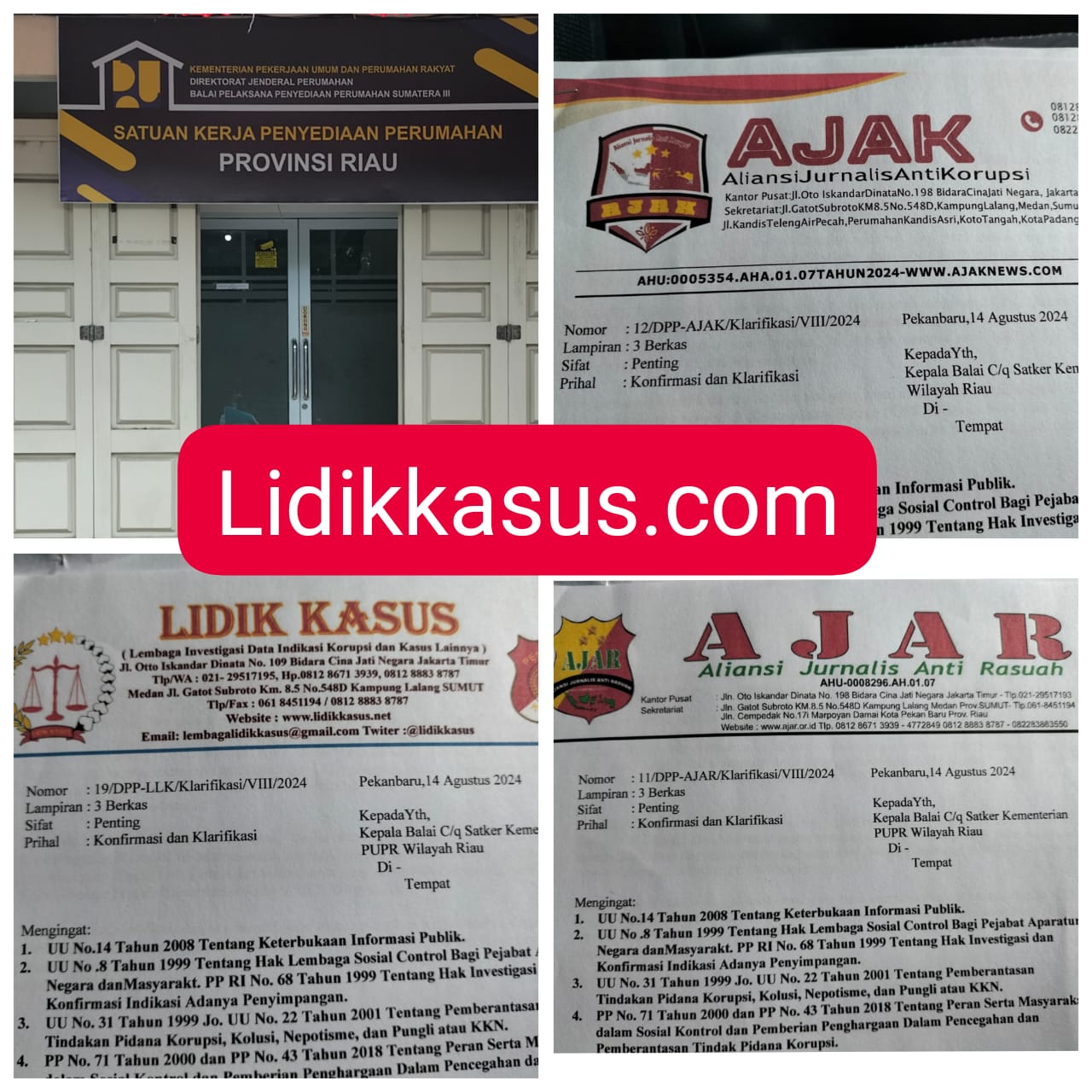 LSM Anti Korupsi AJAR (Aliansi Jurnalis Anti Rasuah) www.ajar.or.id dan LSM AJAK ( Aliansi Jurnalis Anti Korupsi) www.ajaknews.com bersama LSM Lidikkasus (Lembaga Investigasi Data Investigasi Korupsi) www.lidikkasus.com dan beberapa awak media resmi surati Kepala Balai dan Satker Kementerian PUPR Riau Balai Pelaksana Penyediaan Perumahaan Sumatera III , pada kamis 15/08/2024.
