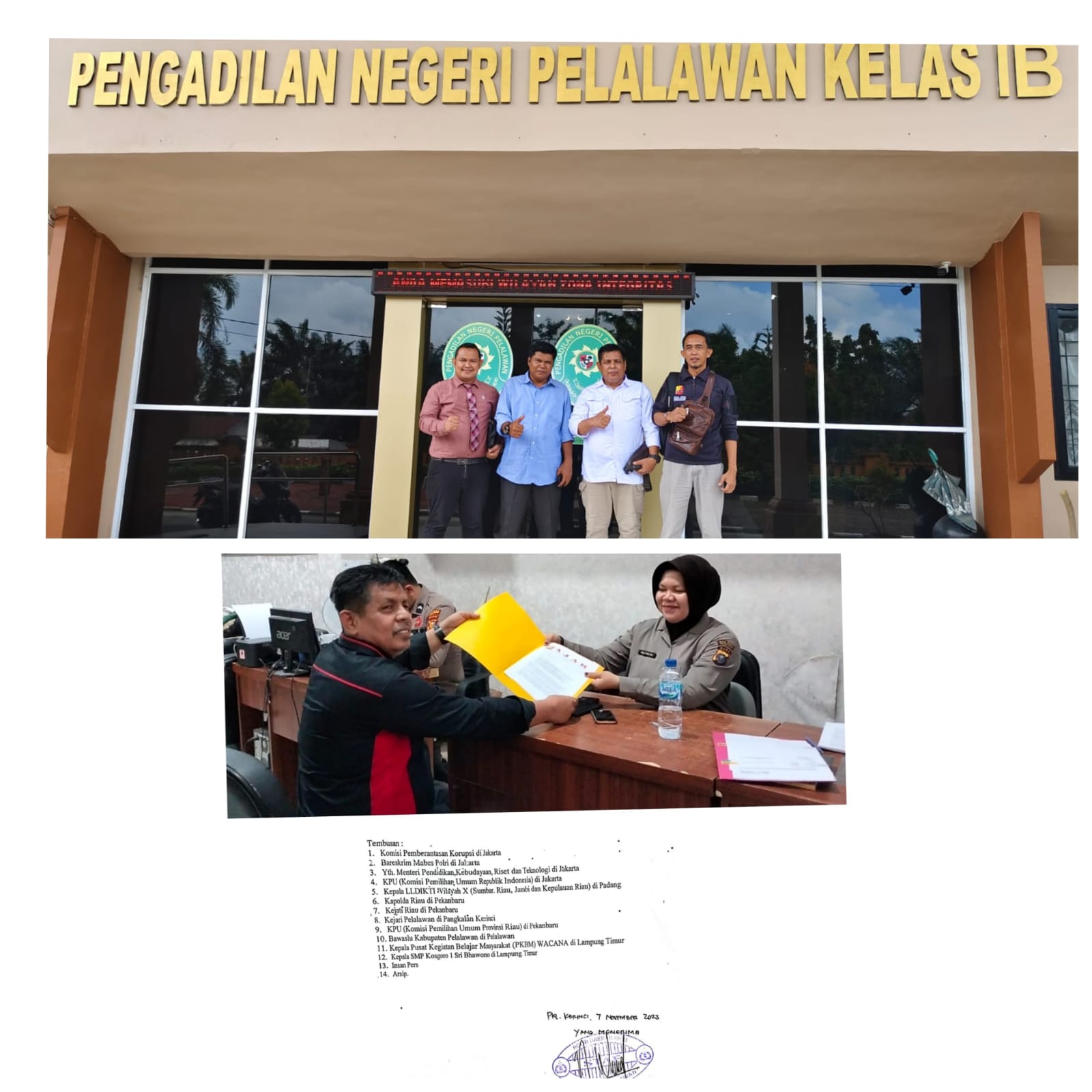 “Ya kami dari LSM anti Korupsi dan awak media meminta agar oknum dosen tersebut juga harus ditarik keterlibatanya dalam pasal 55 karena diduga ikut serta melegalkan sesuatu yang sudah dibatalkan oleh dinas pendidikan lampung timur untuk digunakan melanjutkan pendidikan ke Universitas Lancang Kuning di Pekanbaru.