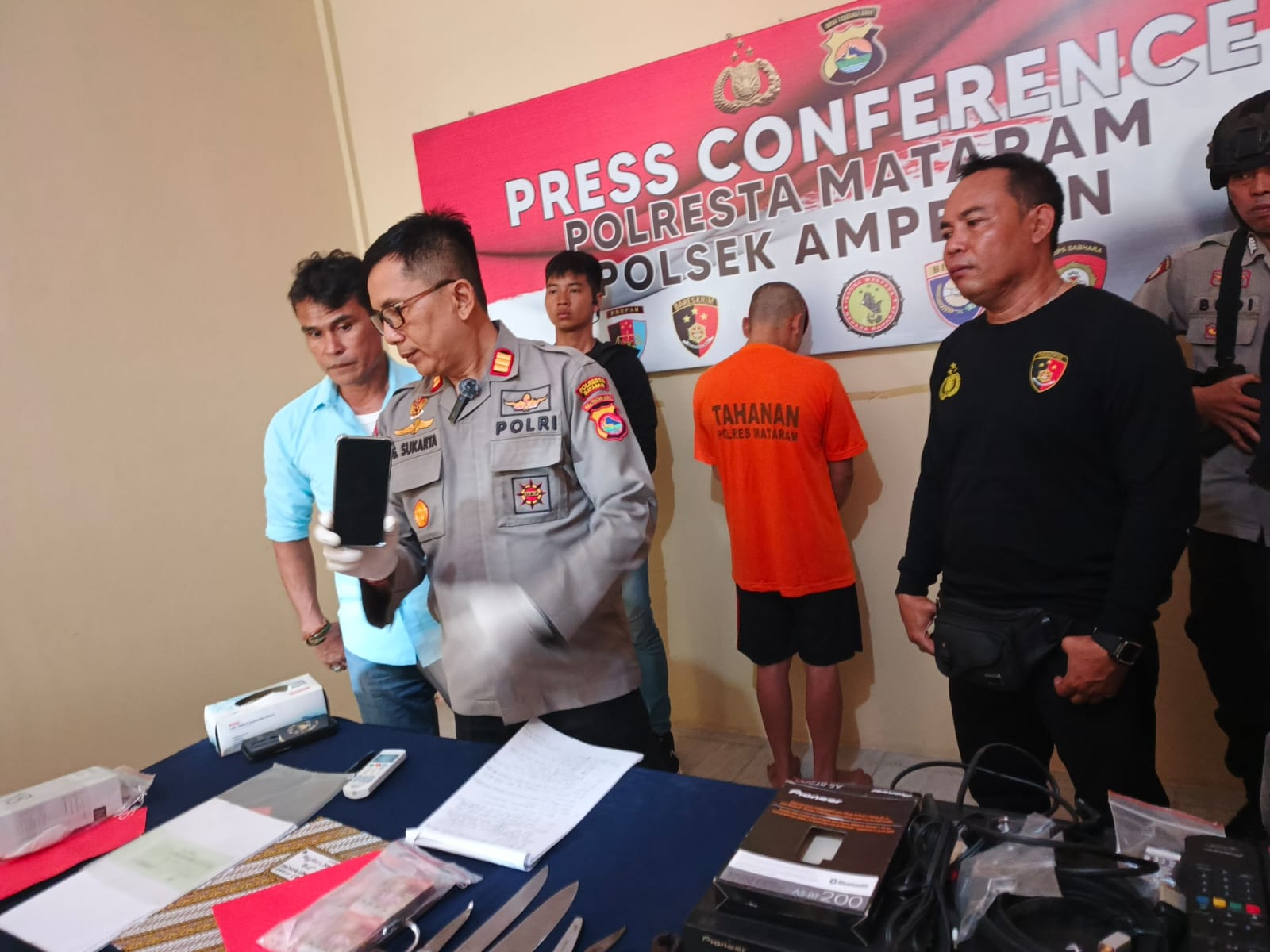 Kapolsek Ampenan AKP Gede Sukarta dalam konferensi pers, Selasa (03/06/2025), mengungkapkan bahwa pencurian terjadi saat korban sedang tidur lelap sekitar pukul 05.00 WITA, Sabtu, 31 Mei 2025. Saat itu, ponsel korban yang sedang di-charge diletakkan di samping kepala. Namun saat bangun, korban mendapati ponselnya raib.